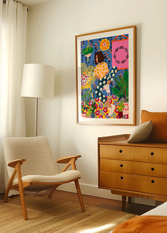 Floral Retreat Girl de Rafaela Mascaro - Papier de qualité supérieure avec une surface mate lisse et une sensation élégante. La finition mate réduit l'éblouissement et donne un look raffiné et intemporel. Solide et durable pour une utilisation durable, idéal aussi bien pour les environnements professionnels que pour les affichages décoratifs.