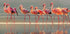 Une superbe photographie naturelle d'un troupeau de flamants roses se déplaçant gracieusement dans des eaux peu profondes, avec d'élégantes plumes roses magnifiquement reflétées à la surface du lac. Cette scène naturelle tranquille capture l’harmonie, le mouvement et la romance sauvage – une décoration murale parfaite pour les amoureux des oiseaux et de la nature.