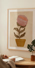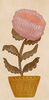 Une charmante aquarelle représentant une délicate fleur rose dans un vase doré. Avec un style vintage texturé et des couleurs pastel douces, cette pièce peinte à la main allie design rétro et élégance botanique, un choix intemporel pour la décoration florale.