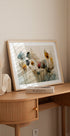 Cette œuvre montre de délicates fleurs aquarelles aux teintes douces sur un fond texturé. La composition éthérée capture la fragilité et l’élégance de la nature, la rendant parfaite pour les amateurs d’art floral et d’inspiration en matière de décoration intérieure.