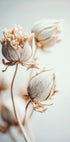 Un gros plan doux et calme de fleurs séchées dans des tons beige crémeux. Avec son minimalisme élégant et son esthétique calme, cette œuvre d'art transmet un sentiment de calme et de beauté raffinée, parfaite pour les intérieurs modernes.