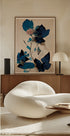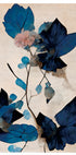 Une œuvre d'art botanique raffinée avec de fines fleurs séchées et des feuilles bleues éclatantes sur un fond beige doux. Le contraste entre les nuances de bleu intense et le fond sourd crée une expression sophistiquée et intemporelle, idéale pour les intérieurs modernes et classiques.