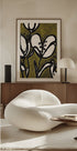 Les tulipes abstraites de Janel Bragg dansent dans des tons vert mousse, où les lignes d'encre noire s'enroulent comme des traits élégants sur un champ vert olive. La composition équilibre le romantisme sombre et le zen moderne – énergique mais apaisant – une déclaration botanique poétique pour le salon, la chambre ou le bureau. Crée calme et présence dans la pièce.