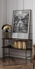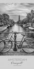 Un regard monochrome et évocateur sur le Prinsengracht à Amsterdam : les vélos s'appuient contre les balustrades, les péniches et les maisons à pignons se reflètent dans l'eau calme, tandis que la Westerkerk s'élève en arrière-plan. Une atmosphère métropolitaine intemporelle capturée par l'artiste Melanie Viola – élégante, graphique et urbaine. Avec une typographie subtile pour une expression moderne.