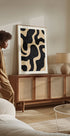 Une œuvre d’art abstraite saisissante avec des formes organiques noires audacieuses coulant sur un fond beige chaud. Le design ondulé et fluide et la surface texturée offrent une sensation à la fois moderne et terreuse – parfait pour les intérieurs Japandi, scandinaves ou contemporains.