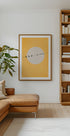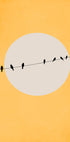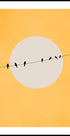 Une illustration minimaliste et élégante d’oiseaux sur un fil, découpés sur un fond circulaire au ton jaune chaud. Cette œuvre d’art graphique moderne rayonne de calme et d’équilibre et devient un élément apaisant mais en même temps frappant dans les intérieurs modernes.