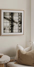 Par Mario Benz : Un regard austère et graphique sur le quartier du gouvernement de Berlin – une façade monumentale dans une grille stricte de fenêtres et de béton, coupée par un escalier pointu qui coupe l'image en diagonale. La palette monochrome légèrement sépia apporte le calme, tandis qu'une petite figure humaine donne l'échelle et suggère le pouls de la ville.