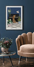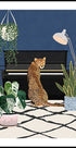 Une illustration originale et élégante d'un guépard assis devant un piano entouré de plantes d'intérieur luxuriantes et d'un décor moderne. Avec des couleurs vives et des détails ludiques, l'œuvre allie musique, faune et charme intérieur et devient une déclaration unique pour les amoureux des animaux et les passionnés de design.