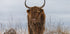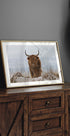 Un majestueux Highlander écossais se dresse calmement dans un paysage enneigé, sa longue fourrure brune saupoudrée de givre et ses cornes arcs graphiques sur l'horizon blanc. La palette hivernale feutrée et le froid brumeux créent le calme nordique et la poésie rurale. La photographie est de Jaap van den Helm. Enregistré à Veluwezoom, aux Pays-Bas, et idéal pour un décor nordique et rustique.