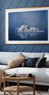 Frosty Island de Günter Kleber capture une île hivernale tranquille entourée d'eaux glacées semblables à des miroirs. Les arbres enneigés se dressent comme des silhouettes aux tons bleutés, tandis que le brouillard enveloppe doucement l'horizon. Un paysage calme et minimaliste, où le froid et la lumière se rencontrent et créent un silence presque méditatif. Les couleurs vont du bleu profond au gris doux.