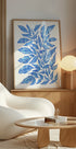 Une délicate impression botanique avec des feuilles bleues peintes à la main sur fond blanc. Le style aquarelle allie minimalisme et élégance, ce qui en fait un choix polyvalent pour les intérieurs modernes. Parfait pour ajouter une touche fraîche et naturelle à n'importe quelle pièce.