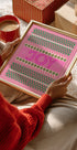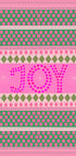 Bright Joy d'Aliya Putrus dégage un esprit festif : le mot JOY est composé de formes géométriques et de motifs en forme de points rappelant la broderie et le patchwork. Des roses et des verts frais, des éclats de paillettes et des champs inspirés du quilt créent un hommage vivant et hivernal à la joie et à l'optimisme coloré.