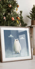 Un ours polaire joyeux et mignon entre dans un paysage hivernal calme, entouré de neige douce et de tons bleus frais. Le style simple et scandinave et le visage sympathique procurent de la chaleur au milieu du froid. Une charmante affiche pour le salon et la chambre d'enfant qui apporte calme, humour et aurores boréales blanches dans la pièce. Cadeau parfait pour les âmes amoureuses de l’hiver.
