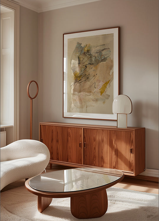Hot July de Gemma Bardot – une composition abstraite avec des tons jaunes chauds, des nuances beiges et des coups de pinceau libres. Les lignes organiques et les gribouillages ludiques créent du mouvement et une énergie estivale, tandis que les champs neutres apportent calme et équilibre. Une affiche moderne qui rehausse la pièce d’une légèreté ensoleillée. Parfait pour le salon, le bureau et les coins créatifs.