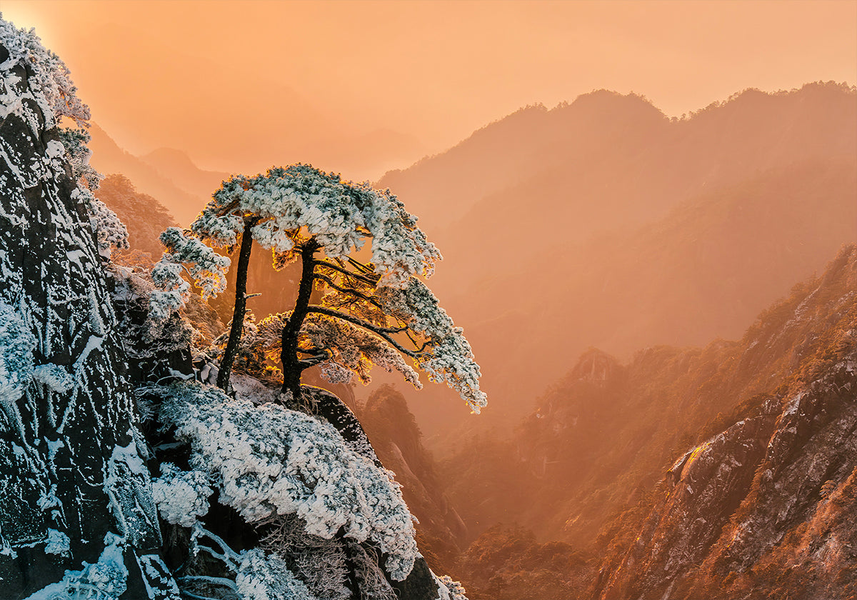 Resilience on the Edge de Wei (David) Dai capture un paysage de montagne hivernal aux premières lueurs du jour : des sapins enneigés s'accrochent au bord d'une falaise abrupte tandis que la douce lueur du soleil brise l'horizon. Une image de force et de calme, où le froid, la hauteur et l'espoir se rencontrent dans un lever de soleil poétique. Parfait pour rêver vers de nouveaux sommets.