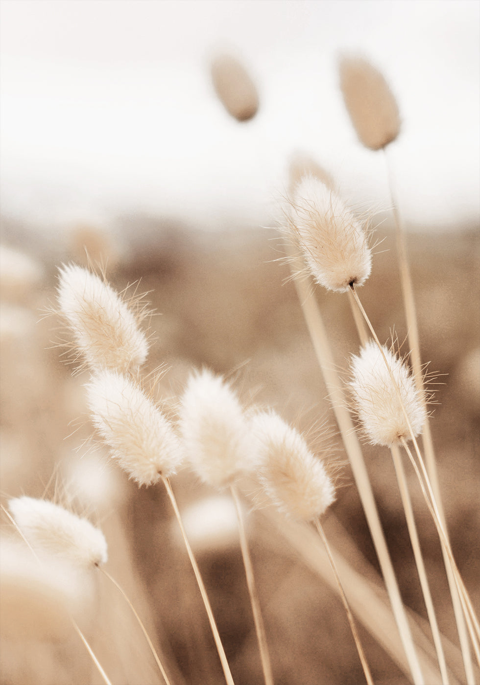 L'affiche « Lagurus » présente une photographie douce et onirique de l'élégante « queue de lièvre » (Lagurus ovatus) » se balançant doucement au gré du vent. Avec ses tons chauds de beige et de sépia, cette œuvre crée une atmosphère apaisante et naturelle dans n'importe quelle pièce. Le fond flou souligne le style minimaliste, ce qui en fait l'affiche idéale pour une décoration scandinave, bohème ou moderne inspirée de la nature. Un cadeau idéal pour les amoureux de la nature et ceux qui apprécient une décoration simple et élégante.
