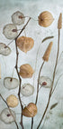 Lanterns de Mandy Disher met en scène de délicates lanternes physalis dans une nature morte poétique. Les boîtiers transparents brillent dans des tons chauds d'automne, tandis que les fines tiges dessinent des lignes lumineuses sur un fond calme et clair. Un motif botanique minimaliste avec un mouvement silencieux et une élégance nordique. Parfait pour les murs de galerie et un décor calme et moderne.