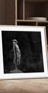 Un suricate vigilant se tient debout comme la petite sentinelle de la savane, capturé dans un moment dramatique en noir et blanc. La douce lumière latérale met en valeur la texture de la fourrure et les contours nets, tandis que l'arrière-plan tombe dans l'obscurité. Un portrait animalier minimaliste et intemporel photographié par Greetje van Son. Se concentrer sur le regard donne au sujet calme et présence.