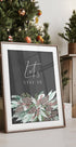 Et frostkysset blomsterstilleben med fyrrekogler, vinterbær og grønt, let pudret af sne, indrammet af kølige hvide og blå nuancer. Den varme opfordring “Let’s stay in” giver en rolig, hyggelig stemning – perfekt til vinterens stille øjeblikke. Af kunstneren Rosana Laiz Blursbyai. Et elegant, roligt fokuspunkt til entré, stue eller soveværelse.