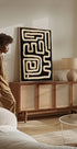 Une œuvre abstraite audacieuse avec des lignes beiges torsadées sur un fond noir profond créant un effet de labyrinthe. Son fort contraste et son design moderne en font une pièce maîtresse saisissante dans les intérieurs modernes, parfait pour ajouter une expression graphique à un salon, un couloir ou un bureau.