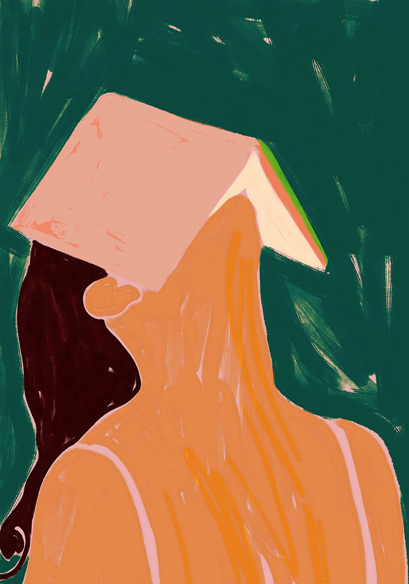 Reading Between the Lines d'Uma Gokhale capture un moment tranquille de contemplation : une femme au repos, absorbée par son livre, entourée de pastels doux et de coups de pinceau subtils. La lumière et l'ombre suggèrent la réflexion, tandis que la composition invite à la proximité, à la tranquillité et à la magie tranquille de la lecture. Un portrait moderne et poétique de la joie de lire et de l’introspection tranquille.