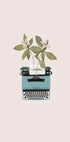 Une affiche de collage unique représentant une machine à écrire bleue vintage avec des fleurs botaniques poussant sur le papier. Minimaliste mais nostalgique, cette œuvre d'art allie charme rétro et beauté naturelle et s'intègre parfaitement aux intérieurs modernes, vintage et éclectiques.