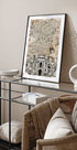 En stemningsfuld Madrid-plakat af Simon Goggin, der fanger byens puls i en retro collage. Et detaljeret bykort flettes sammen med ikoniske motiver som Plaza de Toros, matadorer og klassiske byscener. Varme, solmættede farver og grafiske former skaber en levende hyldest til Spaniens hovedstad. Perfekt til elskere af rejse, kultur og grafik.