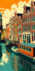 Taudalpois Amsterdam Canal Houses capture le charme des maisons à pignon étroites de la ville le long du canal. Les tons orange chauds se reflètent dans l'eau, tandis que les bateaux et les vélos suggèrent une circulation calme dans les rues historiques. Une affiche de voyage nostalgique avec une clarté graphique et une touche vintage moderne. Parfait pour les amoureux d’Amsterdam et de poésie urbaine nordique.