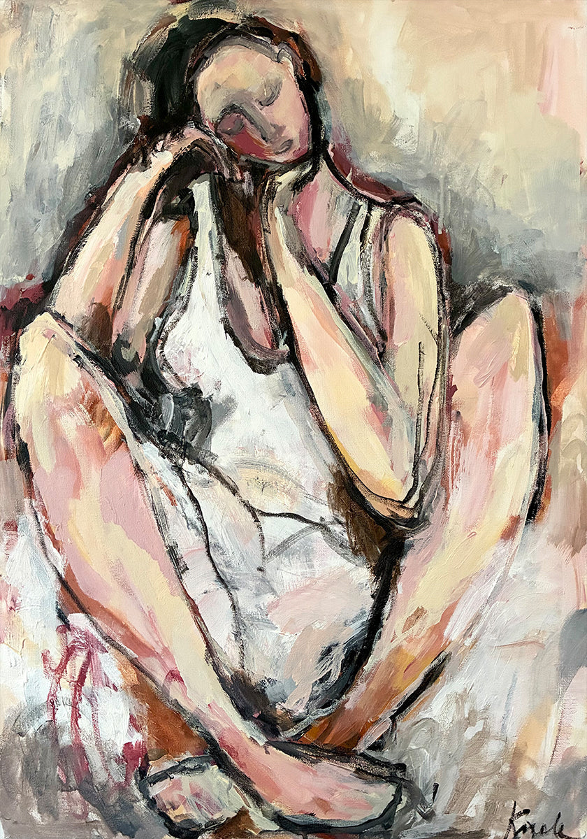 Morning de Magdalena Krzak capture le moment calme entre le sommeil et le réveil : une silhouette féminine enveloppée de tons doux de rose et de blanc, avec la lumière du matin glissant sur les contours. Le style subtil, abstrait-figuratif crée le calme et la réflexion et donne à la pièce un équilibre poétique et féminin. Parfait pour la chambre ou le coin tranquille.