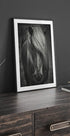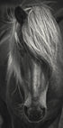 Un saisissant portrait en noir et blanc d'un cheval islandais, avec la crinière tombant vers l'avant dans un look élégant et balayé par le vent. Les tons monochromes soulignent la texture brute du poil et la force calme de l'animal, créant un portrait animalier à la fois audacieux et intime. Parfait pour les amoureux de la nature et les intérieurs minimalistes.
