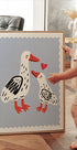 Une illustration douce et réconfortante d'une mère cane et de son caneton partageant un moment de tendresse, mis en valeur par un petit cœur rouge. Le fond pastel doux et le style de dessin ludique créent une ambiance chaleureuse et affectueuse, parfaite pour les chambres d'enfants, les crèches ou les espaces qui célèbrent l'amour et la connexion.