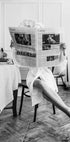 Une élégante photographie en noir et blanc d'une femme en peignoir avec une serviette autour de la tête, lisant élégamment un journal au petit-déjeuner. Avec sa simplicité raffinée et son esthétique intemporelle, l’œuvre capture l’essence du chic sans effort, parfaite pour les intérieurs inspirés de la mode.