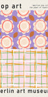 Une affiche Pop Art audacieuse et colorée inspirée de l'exposition du Kunstmuseum de Berlin des années 1950-1960. Avec des formes florales vibrantes et des motifs de grille géométriques, le design reflète le pouvoir de la culture pop américaine dans la répétition. Parfait pour les intérieurs rétro et modernes.