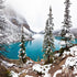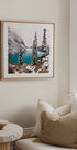 Plongez dans la tranquillité hivernale du lac Moraine : les sommets enneigés se reflètent dans les eaux turquoise et calmes, tandis que les sapins sombres encadrent la vue. La palette sobre de blanc, de bleu et de vert renforce la sensation d'air pur et frais. Créé par l'artiste Matt Crowell, qui capture le magnifique calme de la nature. Un regard intemporel sur les Rocheuses canadiennes.