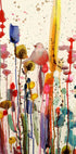 Une aquarelle colorée avec un oiseau fantaisiste entouré de formes de fleurs abstraites. Les couleurs coulent et coulent sur la toile, créant un effet onirique et pictural. L’œuvre capture la beauté ludique de la nature à travers des coups de pinceau vifs et des tons forts.