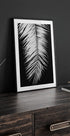 Palmblad_004 est un gros plan monochrome d'une élégante feuille de palmier, où la lumière et l'ombre courent comme des lignes graphiques sur les fines nervures. Le fond noir profond crée à la fois du drame et du calme, tandis que le rythme de la feuille donne à la pièce un point focal minimaliste, parfait pour un décor nordique et une touche de Japandi.