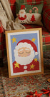 Une affiche de Noël moderne et exubérante avec le Père Noël entouré d'étoiles scintillantes. Le costume rouge chaud brille sur un ciel nocturne d'un bleu profond, tandis que les étoiles jaunes créent une expression ludique et confortable. Un charmant accroche-regard pour les décorations saisonnières – illustré par Bainai, plein de joie et de magie hivernale. Parfait pour le salon, l'entrée ou la chambre d'enfants.