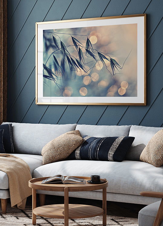 Ce gros plan tranquille capture de délicats brins d'herbe sur un fond pastel de rêve avec une douce lumière bokeh. L'atmosphère paisible et l'élégance fragile créent une œuvre d'art apaisante qui respire l'harmonie, le silence et le calme, parfaite pour un mur d'images relaxant.