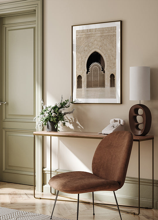 Affiche de la porte principale ornée de la mosquée Hassan II, Casablanca