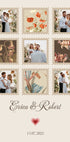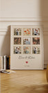 Un collage photo romantique et élégant dans des couleurs douces et vintage avec des cadres en forme de tampons. Personnalisé avec des noms et des dates et un beau souvenir de l'amour et des moments inoubliables. Idéal comme souvenir de mariage, cadeau d’anniversaire ou art mural intemporel.
