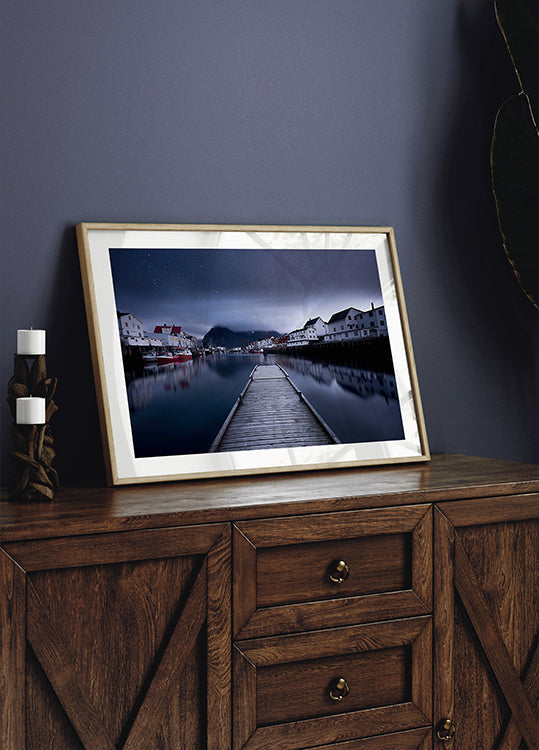 Lorsque la nuit tombe sur Henningsvær, dans les Lofoten, les maisons en bois et les bateaux de pêche se reflètent dans l'eau calme, tandis que les étoiles sont visibles au-dessus de la montagne. Lior Yaakobi capture le calme et la profondeur nordiques avec une ligne de perspective spectaculaire à travers le port, où la lumière du quai conduit le regard vers le ciel bleu foncé. Une nuit tranquille dans la lumière arctique.