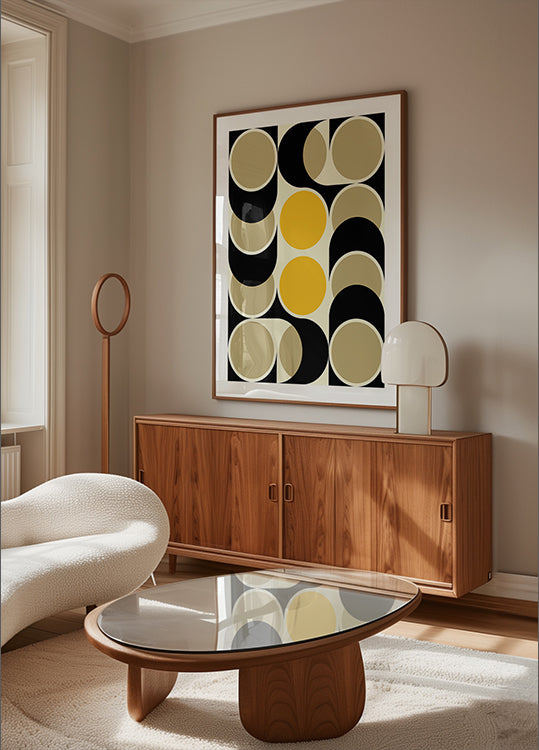 Retro Circles Dance par Petr Strnad - Papier de qualité supérieure avec une surface mate lisse et un toucher élégant. La finition mate réduit l'éblouissement et donne un look raffiné et intemporel. Solide et durable pour une utilisation durable, idéal aussi bien pour les environnements professionnels que pour les affichages décoratifs.
