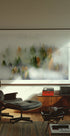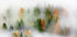 Une vue aérienne de rêve d’une forêt d’automne brumeuse, où les cimes des arbres colorées en vert, orange et or traversent les couches de brume. La douce brume crée une atmosphère magique, presque surréaliste, qui capture la beauté calme et changeante de la nature. Parfait pour ajouter une atmosphère apaisante et poétique à n’importe quelle pièce.
