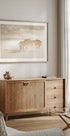 Un paysage d'automne poétique enveloppé de brouillard, où les arbres dorés et orangers brillent doucement contre la lumière brumeuse du matin. L'atmosphère onirique capture la beauté tranquille de la nature à l'approche de l'automne, ce qui en fait une œuvre d'art apaisante et évocatrice pour tout intérieur.