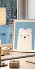 Polar Bear Dreams de Bainai est une illustration charmante et minimaliste d'un ours polaire rêveur sur de la glace enneigée sur un fond bleu calme. L'expression ludique et les formes douces créent chaleur et calme, parfaits pour la chambre d'enfant ou la décoration intérieure nordique moderne, où le confort et l'imagination trouvent leur place. Apporte des sourires tous les jours.