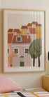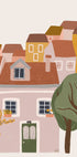 Une vue atmosphérique sur la rue depuis Lisbonne capture la palette chaleureuse de la ville : des façades enduites de jaune moutarde, de rose et de terre cuite, baignées d'une lumière douce. Les rues étroites, les balcons et l'architecture européenne classique créent une atmosphère bohème qui respire la joie du voyage, la nostalgie et la tranquillité. Parfait comme accroche-regard calme et terre-à-terre pour la maison et le bureau.