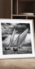 Une scène de navigation dramatique et monochrome : une flotte de voiliers élégants traverse la mer, tandis que les rayons du soleil traversent d'épais nuages et scintillent sur les vagues. La puissance calme et le rythme de la régate capturent le sentiment de liberté créé par le photographe Angel Villalba. Un motif intemporel pour les maisons maritimes et les murs modernes.