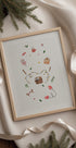 Une jolie illustration à l'aquarelle de Xuan Thai qui capture la magie de Noël avec une maison en pain d'épice confortable, des cannes de bonbon et des sucettes colorées, des mitaines chaudes et des guirlandes lumineuses scintillantes. Les détails kawaii, les bois de renne et les petits coffrets cadeaux créent une atmosphère ludique - parfaite pour les chambres d'enfants et le confort hivernal. Idéal comme décoration saisonnière.