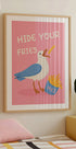 Une illustration farfelue et humoristique d'une mouette volant des frites, avec le texte ludique « Cachez vos frites ». Apportant une ambiance de plage et un charme insolent dans la maison, cette affiche colorée est parfaite pour la cuisine, la chambre d'enfant ou les intérieurs qui embrassent l'humour et le design léger.