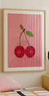 Une illustration ludique et vivante de deux cerises avec des feuilles sur un fond rose texturé. Audacieux, amusant et coloré – ce design apporte une nouvelle bouffée d’humour aux cuisines, salles à manger ou intérieurs modernes et constitue une déclaration originale pour tous ceux qui aiment l’art inspiré des fruits.